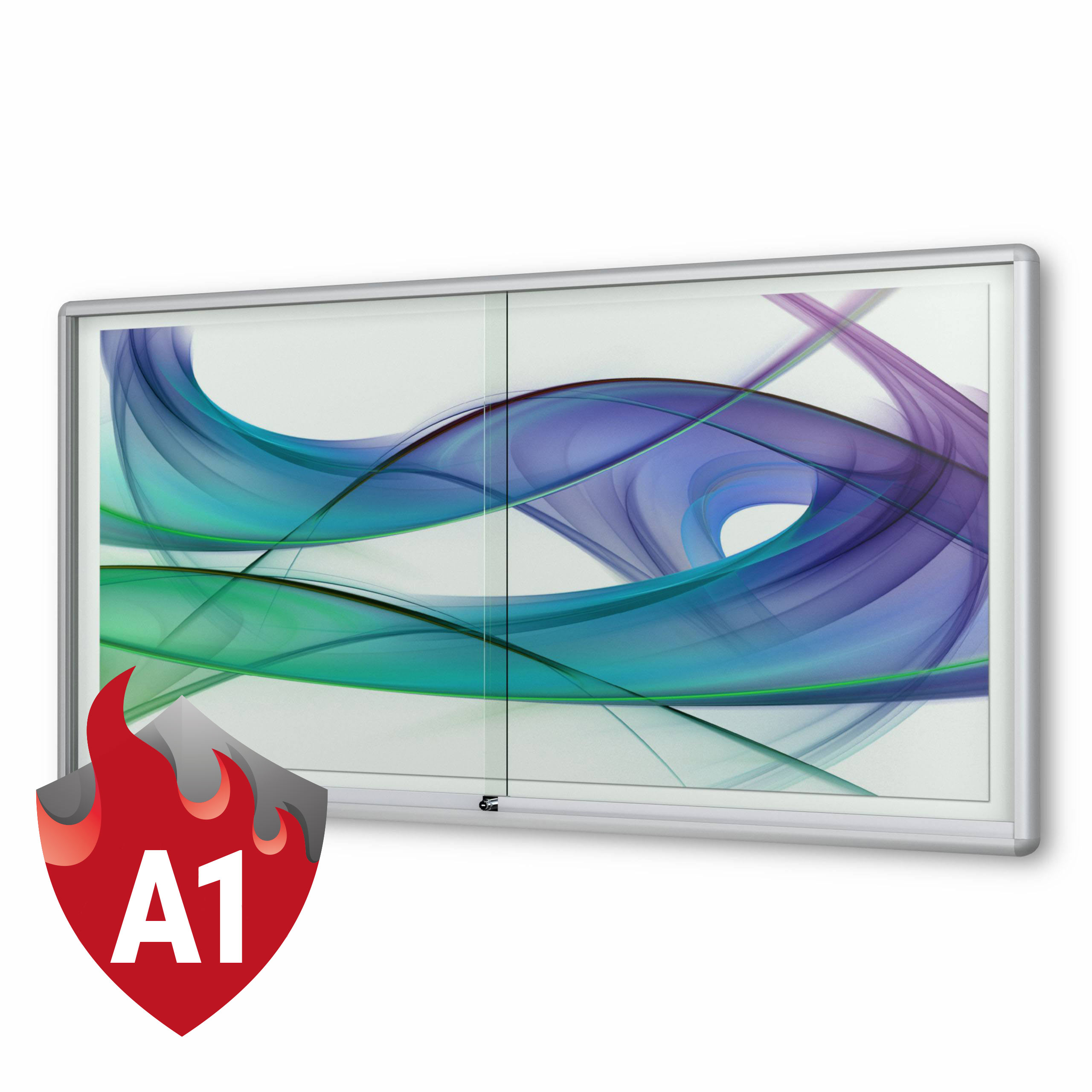 Merkmale Schaukasten: Brandschutz, Unfallschutz (gerundete Kanten), Wandmontage, abschliessbar, magnetisch, mit Schiebetüren